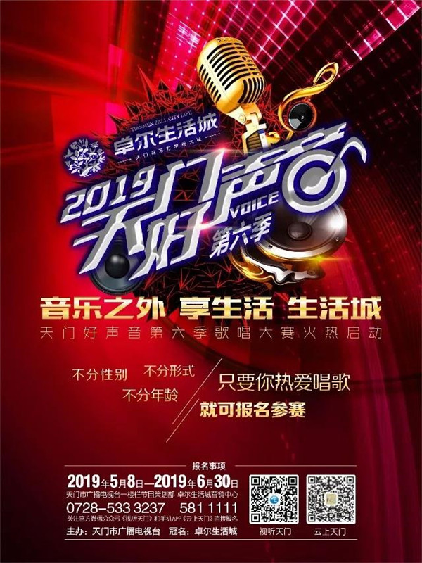 习惯了听天门的声音,这一次,让天门听见我们的声音!,生活SHOW场,唱响天门!,由天门广播电视台与卓尔生活城联合主办,《天门好声音》第六季歌唱大赛席卷全城,用最质朴的声音、最真挚的情感,去表达对这个城市的情怀,2019年5月8日至6月30日,选手报名全城热启...[阅读全文]