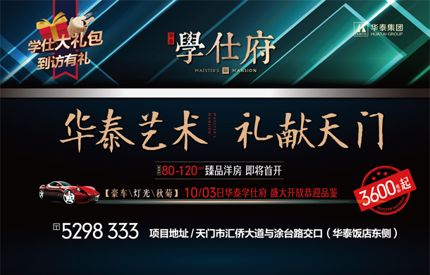 10月3日华泰学仕府营销中心开放,10月3日—10月8日天门华泰学仕府为您准备了丰富的、创意的、好玩的活动 轻松过假日,快来享受一场创意盛宴吧!!...[阅读全文]