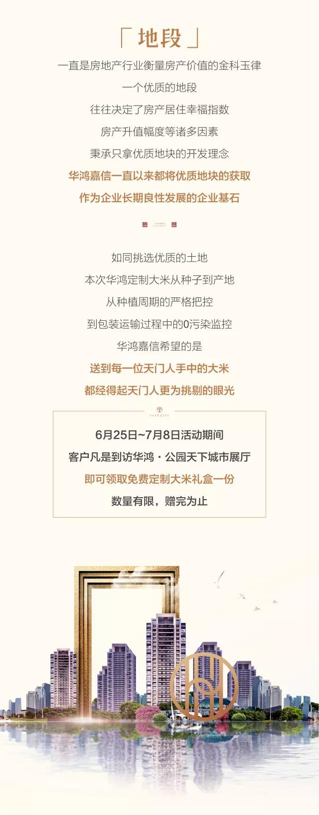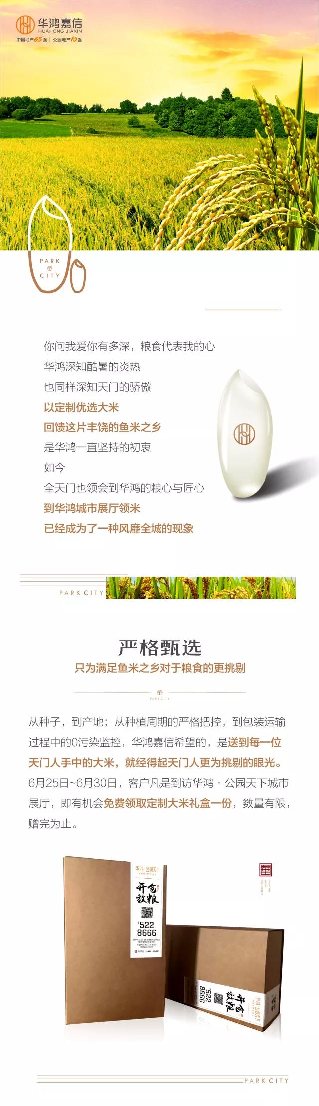 6月25日-6月30日,客户凡是到访华鸿·公园天下城市展厅,既有机会免费领取定制大米礼盒一份,数量有限,赠完为止。...[阅读全文]