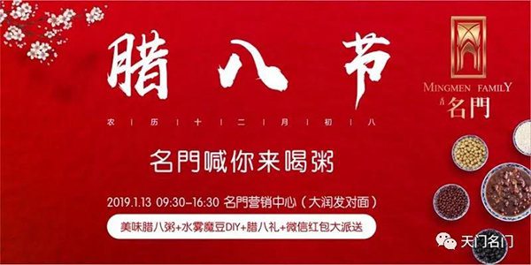“小孩小孩你别馋,过了腊八就是年腊八粥喝几天,哩哩啦啦二十三…”腊八节马上就要到了在这样一个年味浓浓的节日里大家要做些什么呢?!当然是喝腊!八!粥!一个有着这样传统韵味的节日名門怎么能错过!正所谓独乐乐不如众乐乐必须给小伙伴发福利庆祝庆祝撒~温暖“粥”到,邀您同享合家欢喜祈丰年,亲朋同饮腊八粥值此腊八节来临之际名門精心准备了美味的腊八粥和大家一起庆腊八,迎大年!腊八节喝一碗香气四溢的腊...[阅读全文]