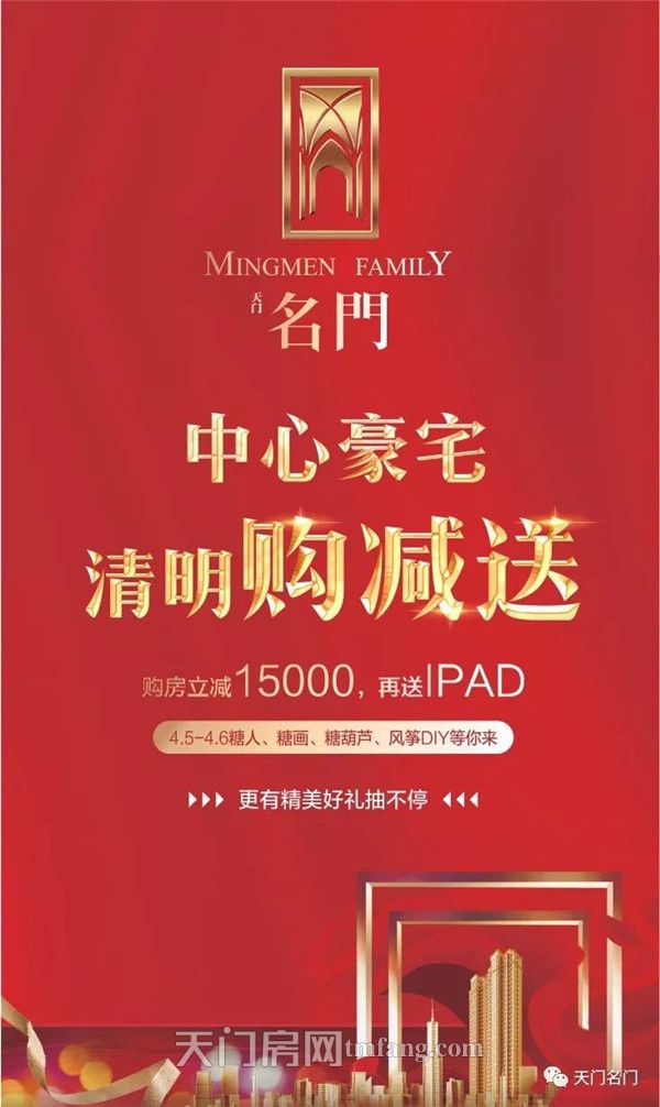 每个人心中都有一张关于“家”的蓝图或许是在大城中央的正席华宅,可以收获倾城的赞美欣羡或许是在繁华深处的栖居胜地,可以俯瞰窗外的车水马龙名門的到来,以地王之姿态入驻天门成功地兑现了每个人对于心中那个“家”的渴望7月20日上午9:00【名門】实体样板间倾城绽放老业主答谢会&2 楼喜封金顶&3 楼同步加推活动将盛大举行活动地点:名門营销中心以等待为纸,以时光为尺还原你心中“家”的模样更有...[阅读全文]