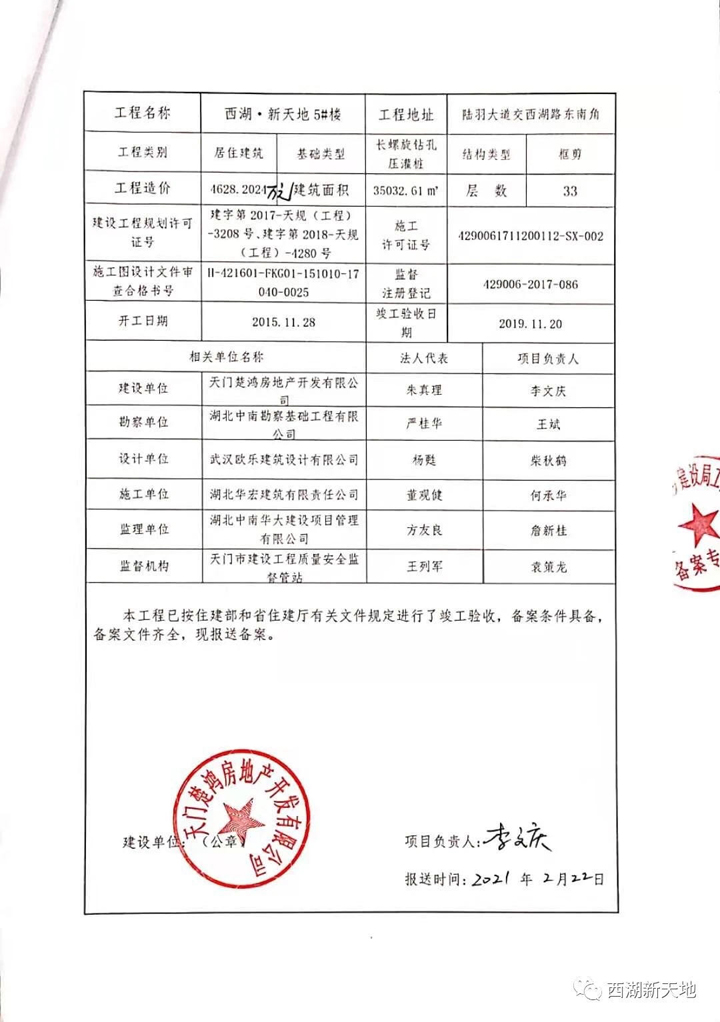 本项目推广名为“西湖·新天地”,核准地名为“西湖·新天地”。开发商:天门楚鸿房地产开发有限公司。预售证号:鄂天门商预字20190035号。本宣传资料为要约邀请,不作为要约或承诺;相关宣传内容不排除因政府相关规划、规定及出卖人未能控制的原因而发生变化;出卖人可能会不定期对宣传材料进行修改;买卖双方的权利义务以双方签订的《商品房买卖合同》及附件等协议为准。