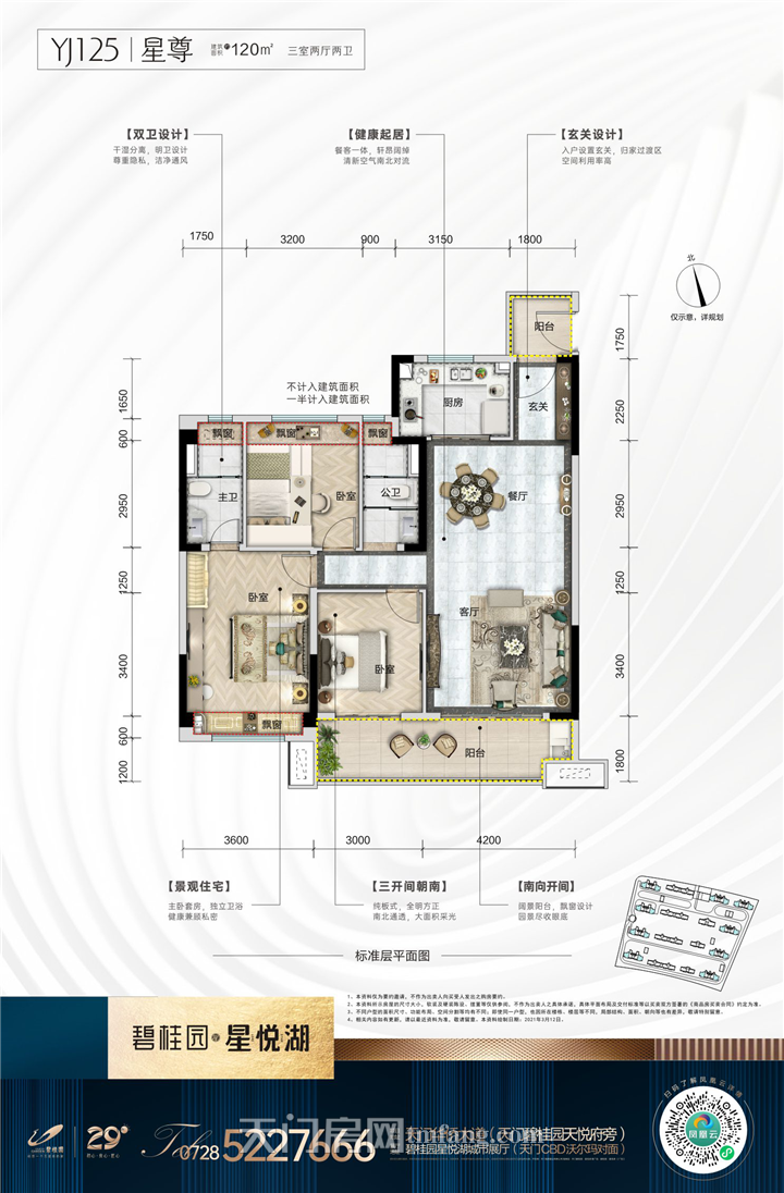 YJ125入户玄关,空间利用率高,主卧套房,独立卫浴,健康兼顾私密,双卫设计,干湿分离,明卫设计,尊重隐私,洁净通风。