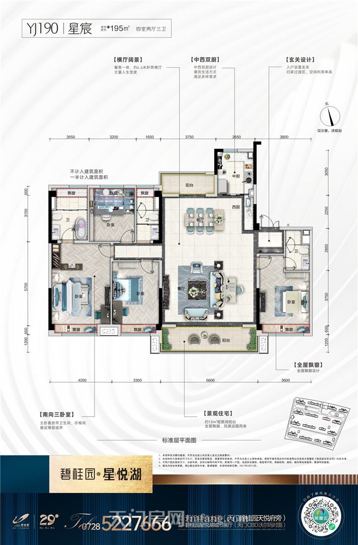 YJ190全系户型均采用星系宽幕设计,约6.6米轩昂横厅,约12㎡观景阔阳台,格局通透,悠享宽阔、明亮的星光之作。