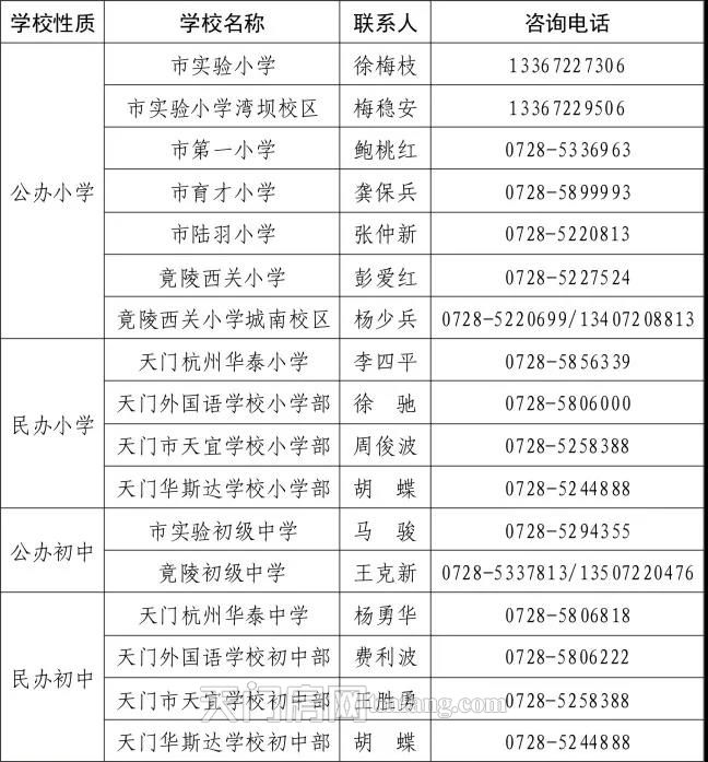 7. 天门杭州华泰小学、天门杭州华泰中学、天门外国语学校、天门市天宜学校和天门华斯达学校如何招生?