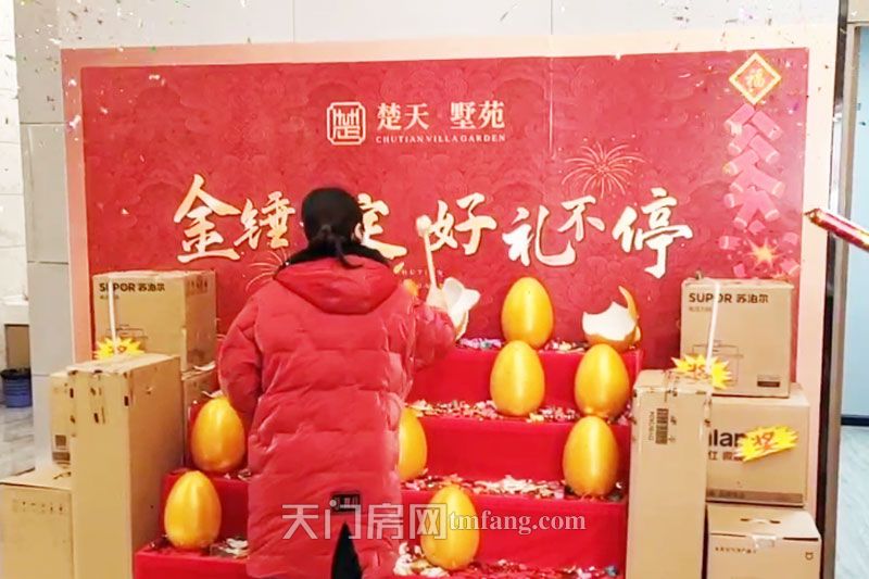 为了感恩回馈客户选择楚天墅苑项目,案场也为每一位签约客户准备了砸金蛋送好礼的环节,让大家在喜迎新年的氛围里,也感受到了来自项目的美好祝福!