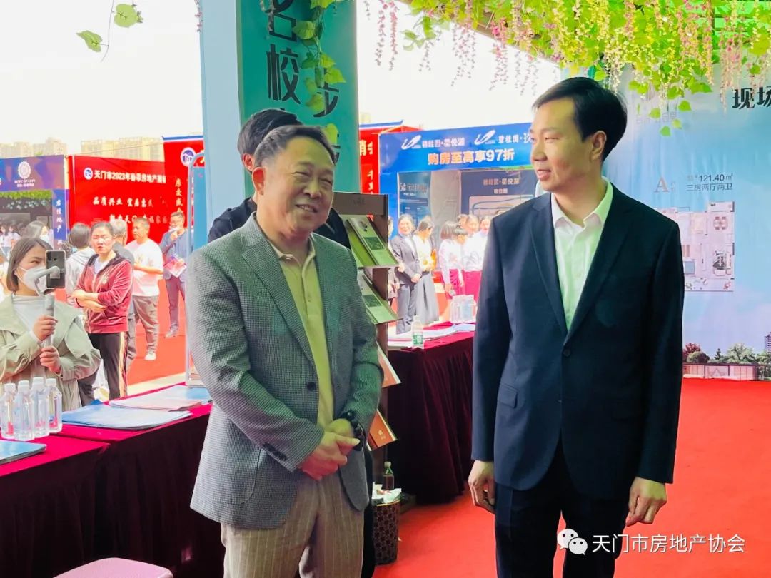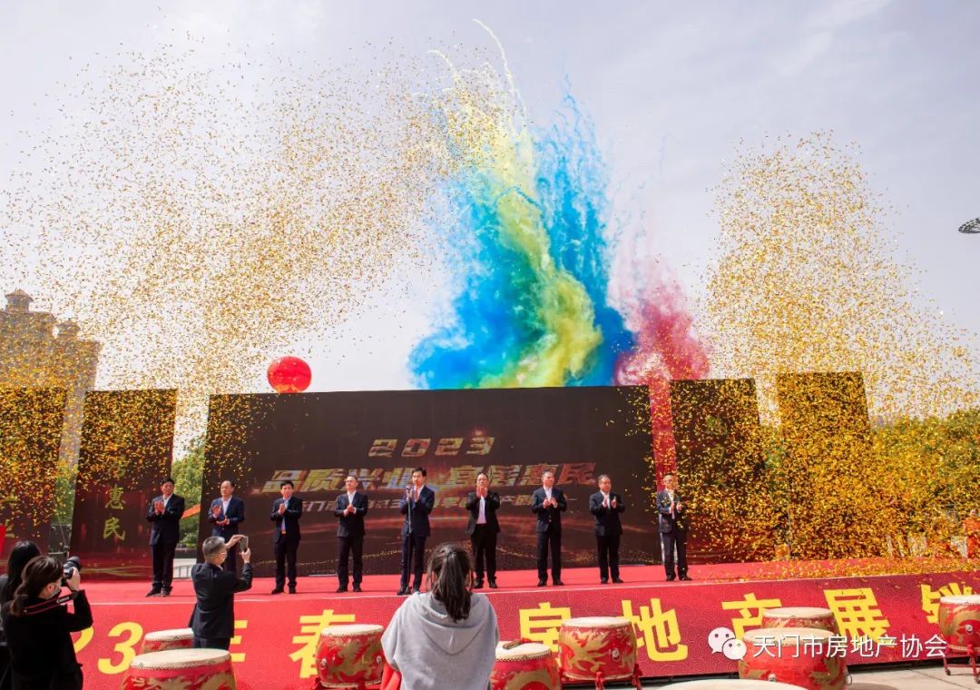 4月29日上午9时38分,以“品质兴业,宜居惠民 ”为主题的天门市2023年春季房地产展销会在陆羽广场拉开帷幕。