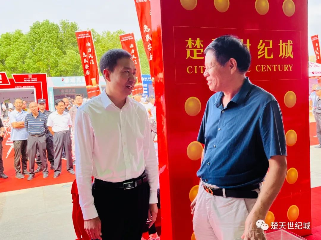 市人民政府副市长杨寒(左)和楚天世纪城开发企业市洲际置业有限公司董事长谭顺新交谈