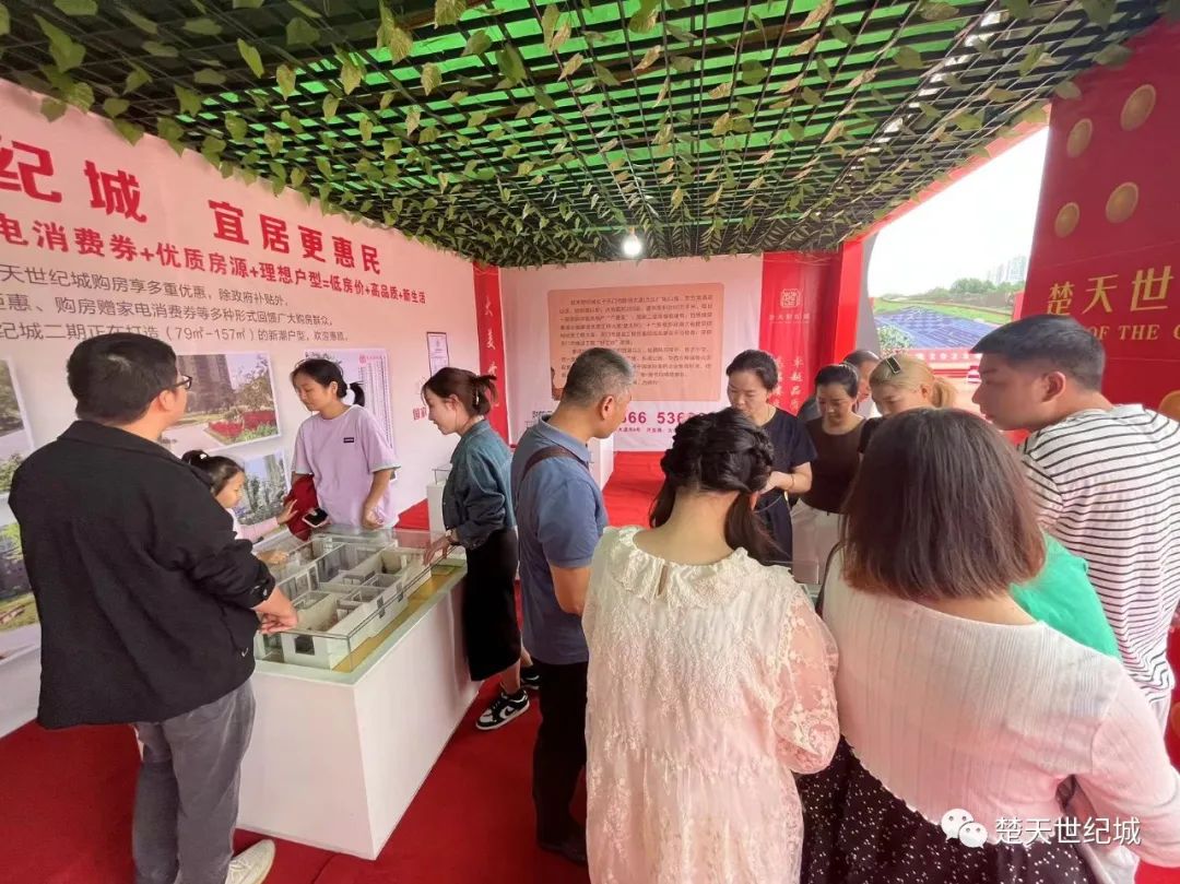 楚天世纪城展位前人声鼎沸、热闹非凡。工作人员热情为市民朋友解答有关咨询,详细介绍小区的情况。项目优异的建设质量和优雅的居住环境、完善的城市配套具有强烈的吸引力。广厦奖楼盘、天门楼市的高品质楼盘,对客户而言如同故乡情结一般难以割舍。恰逢一期清盘大幅优惠、政府补贴、企业家电补贴,二期商铺也有让利,多项实惠叠加,群众多样化多层次的住房需求都能实实在在地满足。