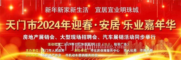 1月19日,由市政府主办,市住房保障服务中心、市人社局、市商务局承办,市房地产协会、市机动车营销服务协会协办的天门市2024年“迎春·安居乐业嘉年华”活动将于1月28日至2024年2月2日在陆羽广场举办。