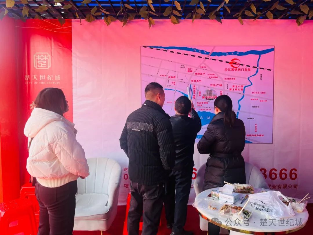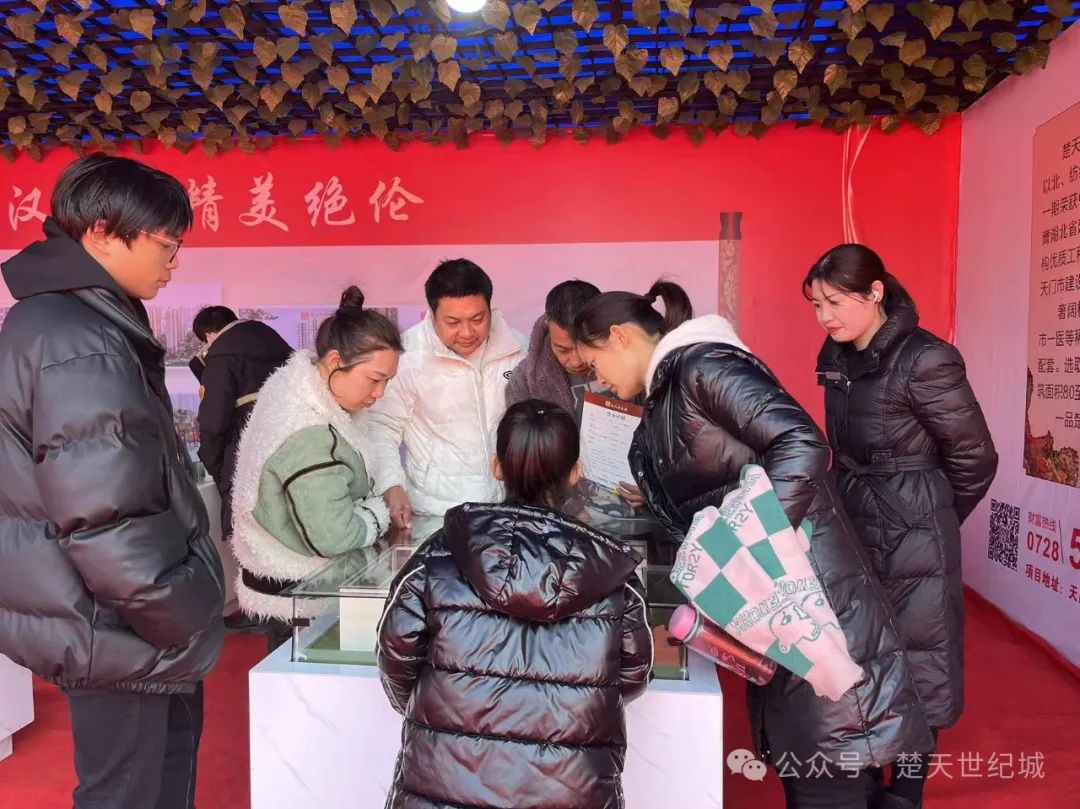 元月28日,天门市房交会在陆羽广场举办,优质楼盘楚天世纪城华丽亮相,展会现场吸引了众多购房者的关注。展厅内外,大家互相交流,纷纷谈论起来。