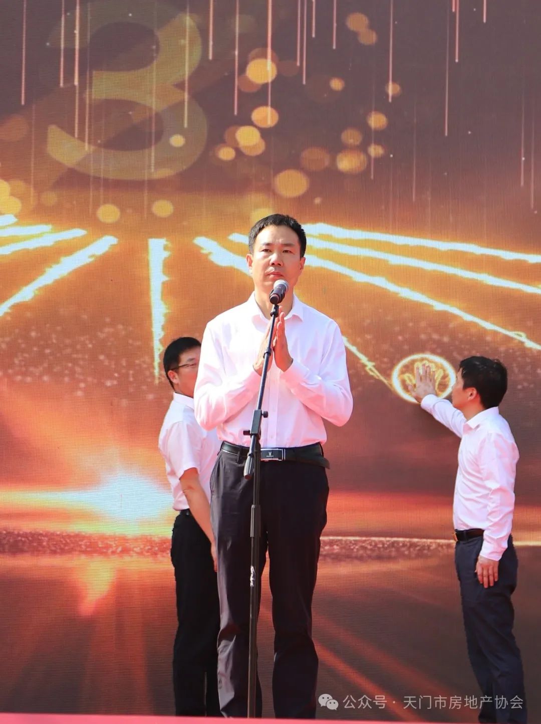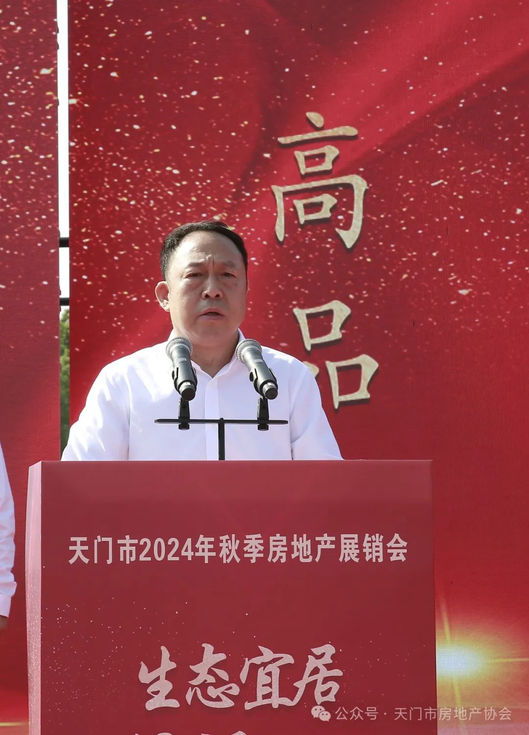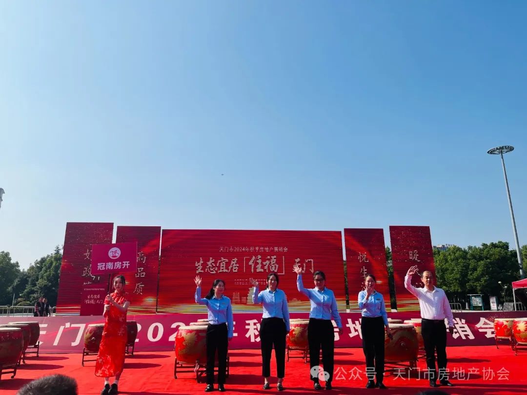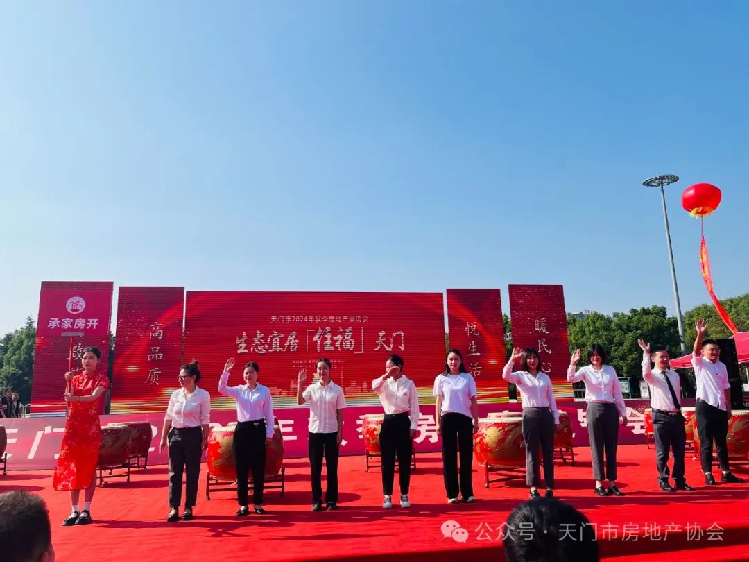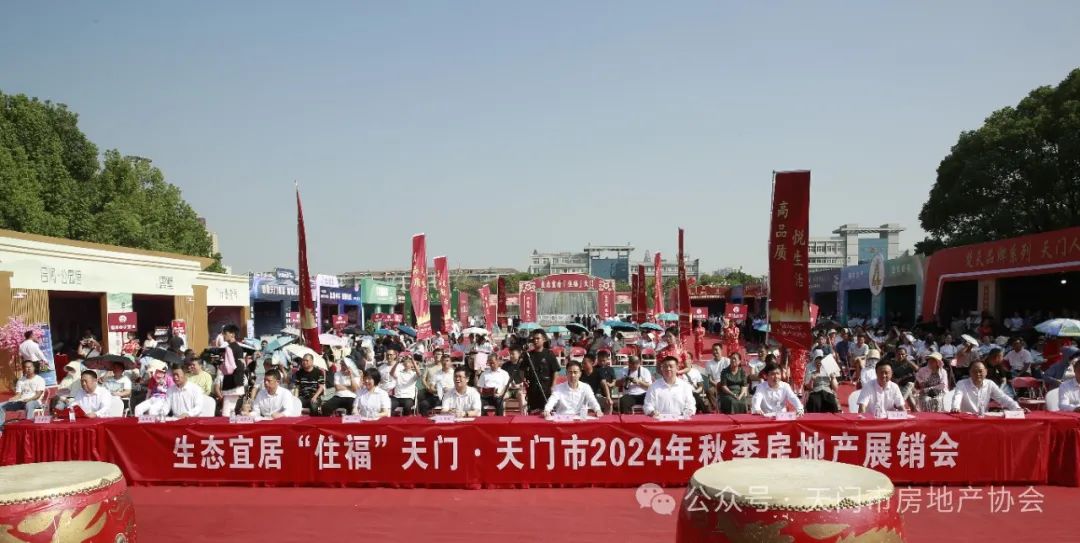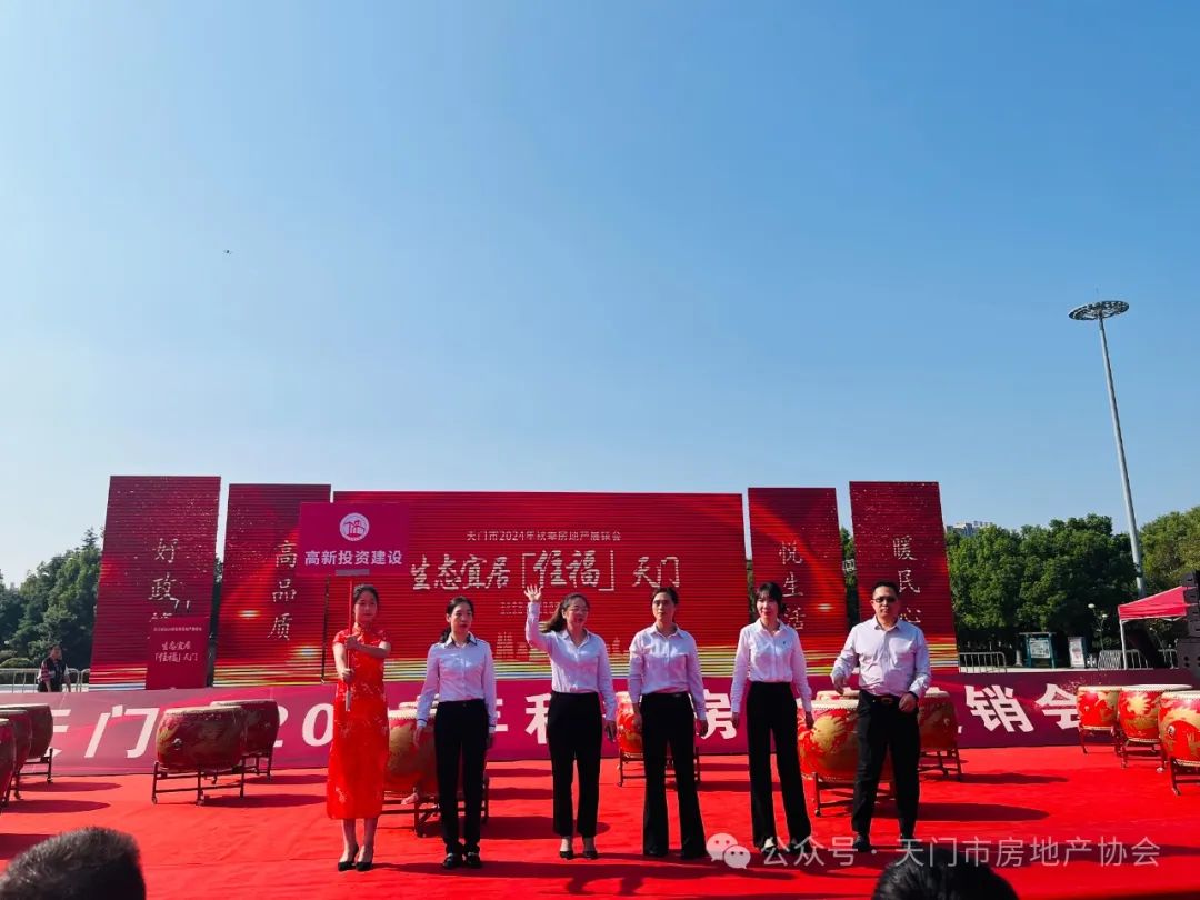 9月29日上午,由市住保中心、市房地产协会主办的 “生态宜居,‘住福’天门”展销活动正式开幕。市人民政府副市长杨寒、市人民政府办公室副主任何丰、市教育局党组书记、局长刘华阳、市财政局党组书记、局长张勇、市自然资源和城乡建设局党组书记、局长王强、市卫生健康委员会党组书记、主任张叶、市农业农村局党组书记、局长吴志兵、市经济和信息化局党组书记、局长陈明敏、市城市管理执法局党组书记、局长梁文江、市住房保障服务中心党组书记、主任苏拥军、市房地产协会会长廖爱军参加开幕式。