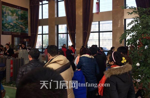 东湖国际营销项目沙盘前和户型区前涌满了购房者