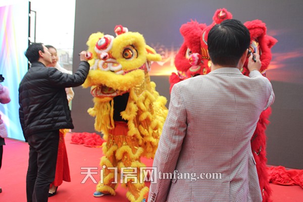 湖北锐风房地产开发有限公司董事长、东湖豪庭范总为醒狮点睛,左点金右点银,中间点太平。雄狮舞动东湖豪庭,锐风喜圆宜居梦想。