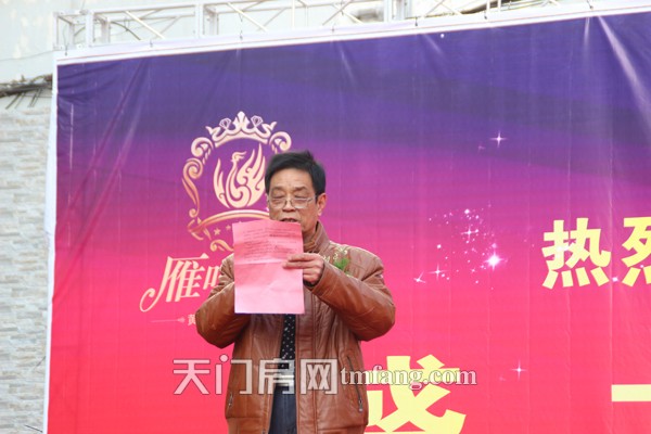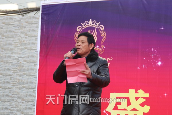 天门房地产协会会长谭会长上台致辞,对雁叫名苑项目做简单介绍,并对项目的优势表示肯定。