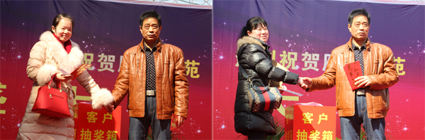 一等奖(3800元现金红包)中奖客户上台领奖