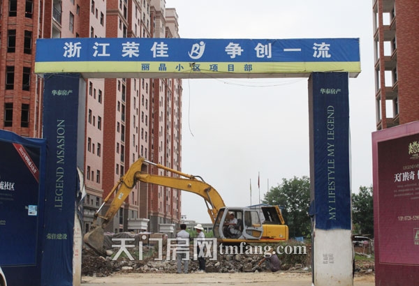 这里是华泰丽晶小区的大门,开发商是天门华泰房地产开发有限公司,工地上正在修建大门口。