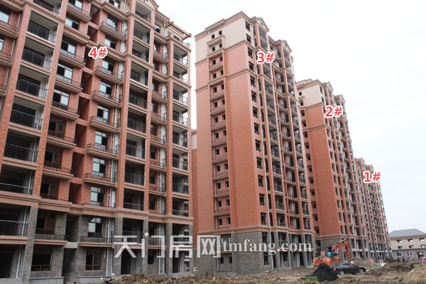 这里是小区一期里面的1#、2#、3#和4#楼并列而建,坐北朝南,目前门窗都已经安装的差不多。