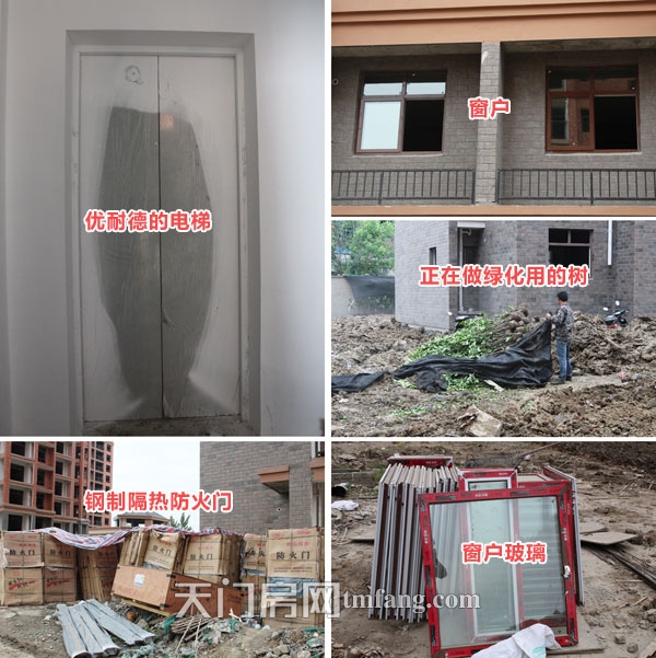 华泰丽晶小区的电梯是优耐德的品牌,工地上放着窗户用的玻璃,还有门、防火门等一系列建材,别值得注意的是,小区工地上还放着很多的树苗,工人们正在小心的遮盖起来避免阳光照晒和晚上雨水打湿,随时准备做绿化而用。