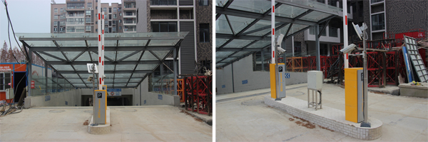 停车场入口前分两个车道让车辆进出入,前面放置有监视器,全面保证业主的停车安全。