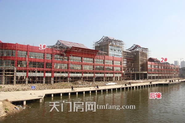 从陆羽故园方向的西寺路上看到的印象西江·天街1#、2#楼和美丽的后壕,据了解1#和2#楼主要规划的是餐饮娱乐为主。