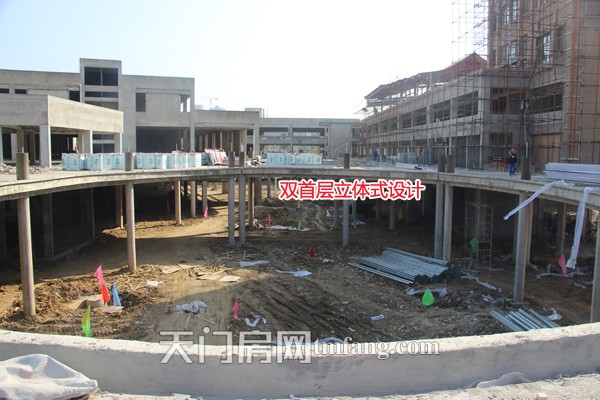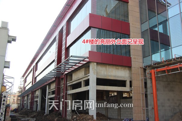 4#楼的外立面已经亮丽呈现,红色墙砖和大面积玻璃窗十分的大气时尚又不乏文化色彩。4#楼面向天门市陆羽广场体育馆,主要规划的是体育用品区。