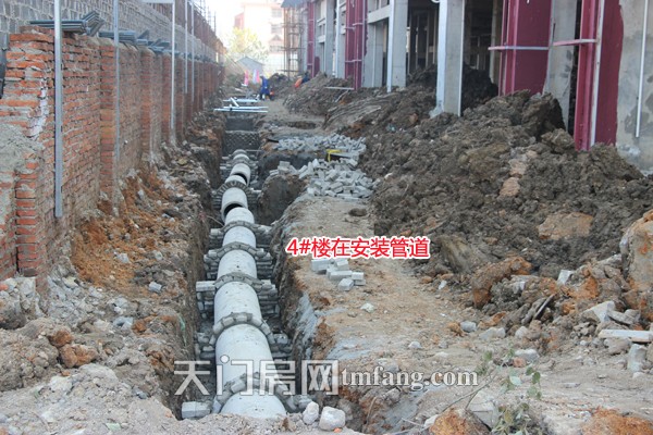 4#楼与天门美食文化街相临的方向正在安装地下管道和消防管道等