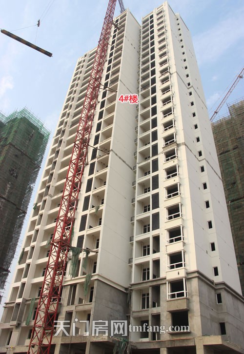 从钟惺大道房产局处看到的汇金国际项目,一期4#、5#、6#楼在刷外墙漆、做墙体保温层。