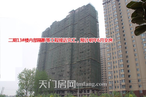 新工程进度:一期7-12#楼基本完工,6月30日交房;二期1、2、13#楼内部隔断等工程接近完工,预计明年6月交房,3-5#楼在建10层、预计明年8月交房,6#楼在建二层底商,2#、8#楼之间的游泳池在做侧墙。