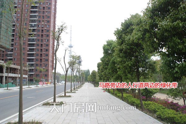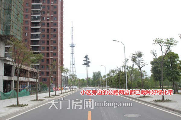 小区旁边的公路两边都已经栽种许多树木,绿化带做好