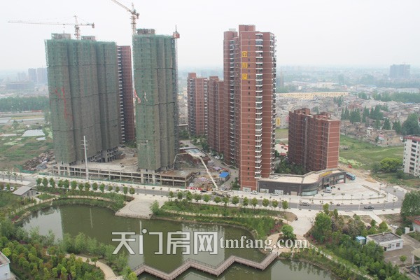 新工程进度:东湖金利屋的11#楼和12#楼已经喜封金顶,正在做内部隔断、安装电等;项目左侧沿东湖的道路两边已栽种满了树木,绿化带已做起,同时这边的小区侧门也已经做好,有门卫值岗,车辆、行人可正常通行;小区里面的绿化带愈发葱郁,移步异景,环境十分优美。