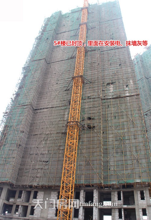 5#楼已封顶,内部正在安装电、抹墙灰等