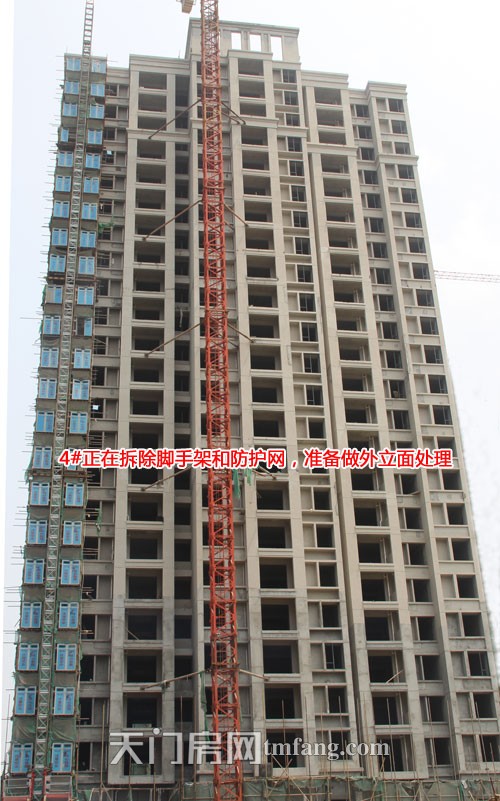 4#正在拆除脚手架和防护网,准备做外立面处理