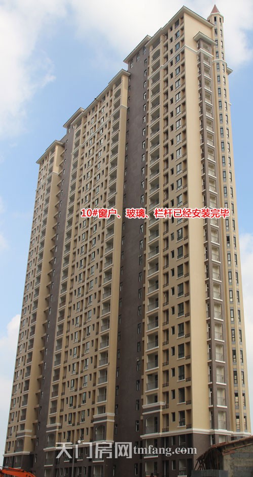 新工程进度:8#、9#、10#楼窗户玻璃和栏杆都已安装到位,内部隔断都已完工,水电、管道、门、电梯等已安装,已经是现房;10#正在做内部防水和完善细节;8#和9#预计10月交房。【8月您想看天门哪个在建楼盘的工程进度?】