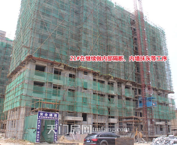 21#楼在继续做内部隔断、内墙抹灰等工序