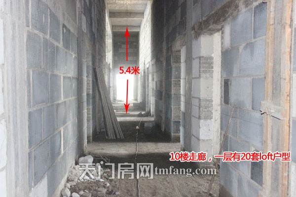 10层楼的走廊,一层共有20套LOFT户型