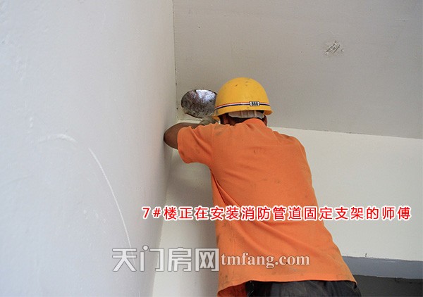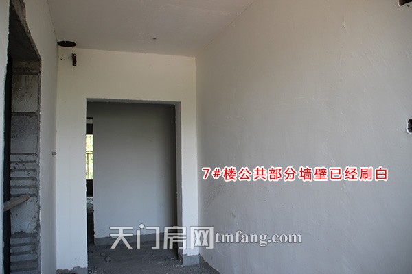 7#楼内部隔断完工,内墙抹灰完成,楼栋内部公共部分已刷白,在安装管道