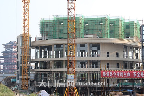 商业部分竟陵唐街A1-A4栋主体已经完工,外立面已经呈现,窗户和玻璃已经安装好。