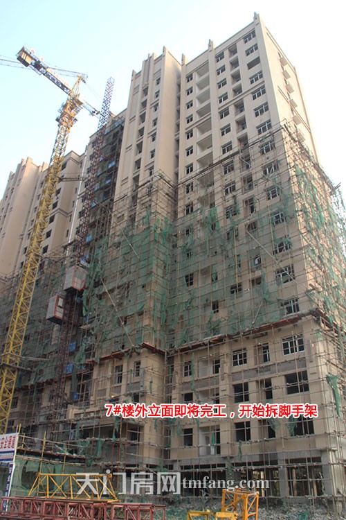 7#楼窗户和栏杆已经安装,外立面即将完工,开始拆除脚手架