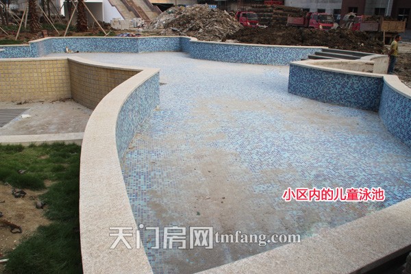 这里是1#、2#楼和7#楼、8#楼之间的小区内的儿童泳池,已经贴完砖