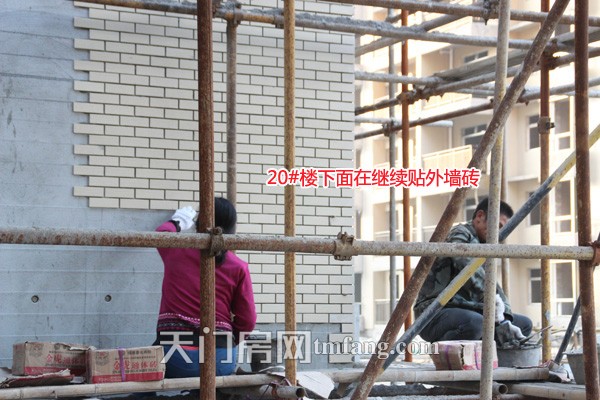 20#楼下面在继续贴外墙砖