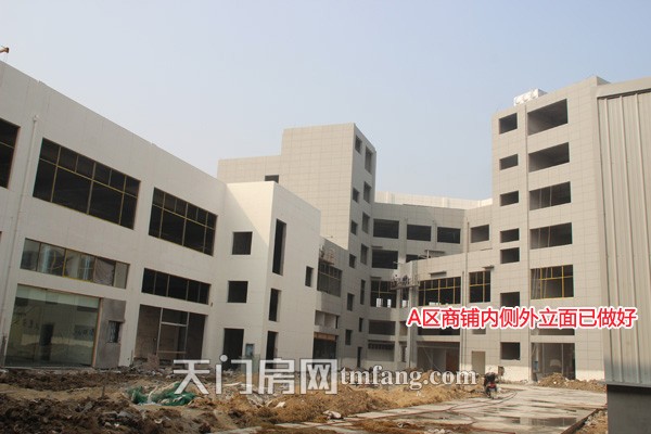 A区商铺内侧开始安装窗户,外立面基本完工