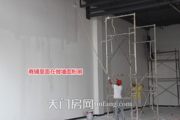 商铺里面在做墙面粉刷工序