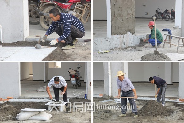工人们在铺砖