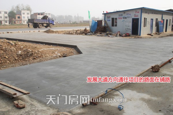 发展大道方向通往项目的路面在铺路
