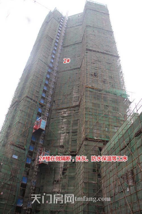 2#楼在做内部隔断、内墙抹灰、保温和防水等工序