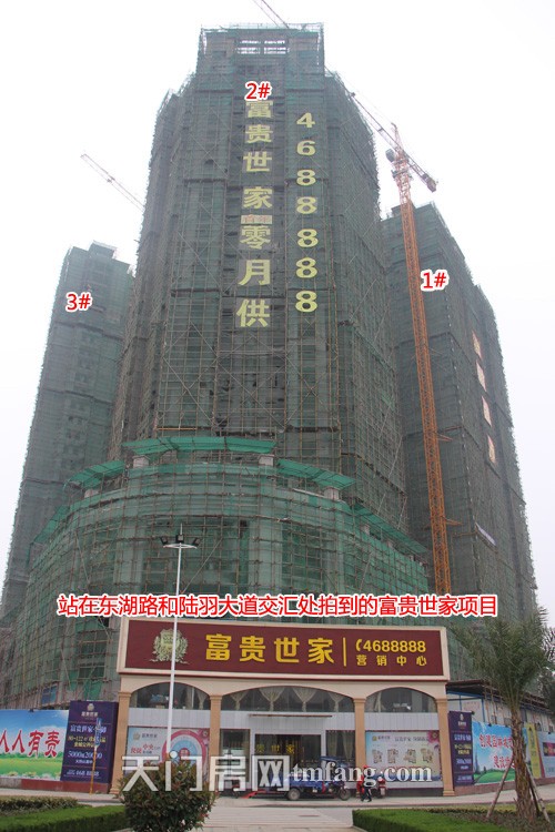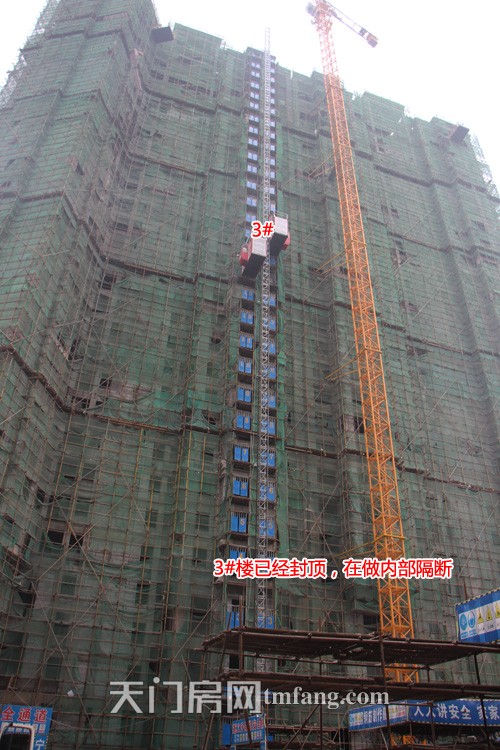 新工程进度:富贵1#楼和2#楼在做内部隔断、内部抹灰、防水保温等工序;3#楼已经封顶,在做内部隔断;商铺外立面已经做好。