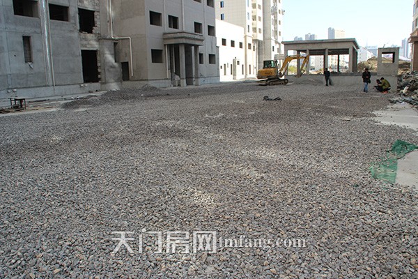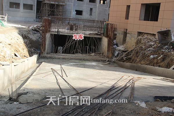 地下车库进一步施工中,入口处的水泥路已经铺好。