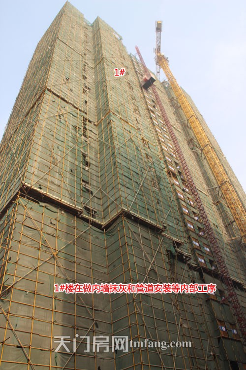1#楼在做内墙抹灰和管道安装等内部工序
