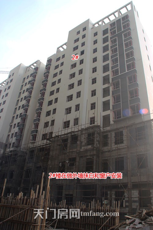2#楼在做外墙抹白和窗户安装